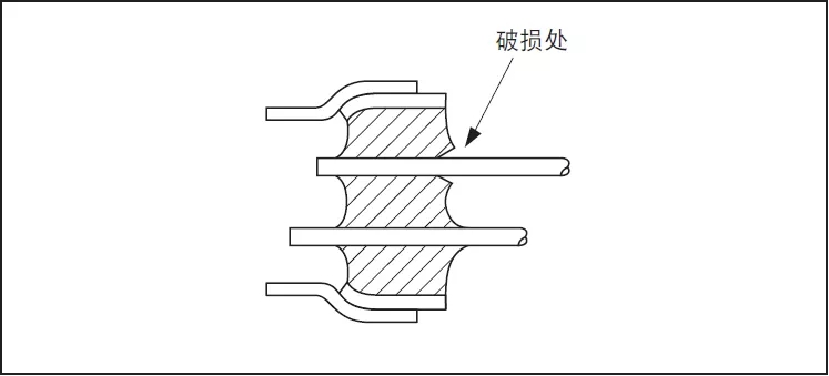 (1) 要修改弯曲的导脚时,以及要取出晶振等情况下不能强制拔出导脚,如果强制地拔出导脚,会引起玻璃的破裂,而导致壳内真空浓度的下降,有可能促使晶振特性的恶化以及晶振芯片的破损(参阅图3)。